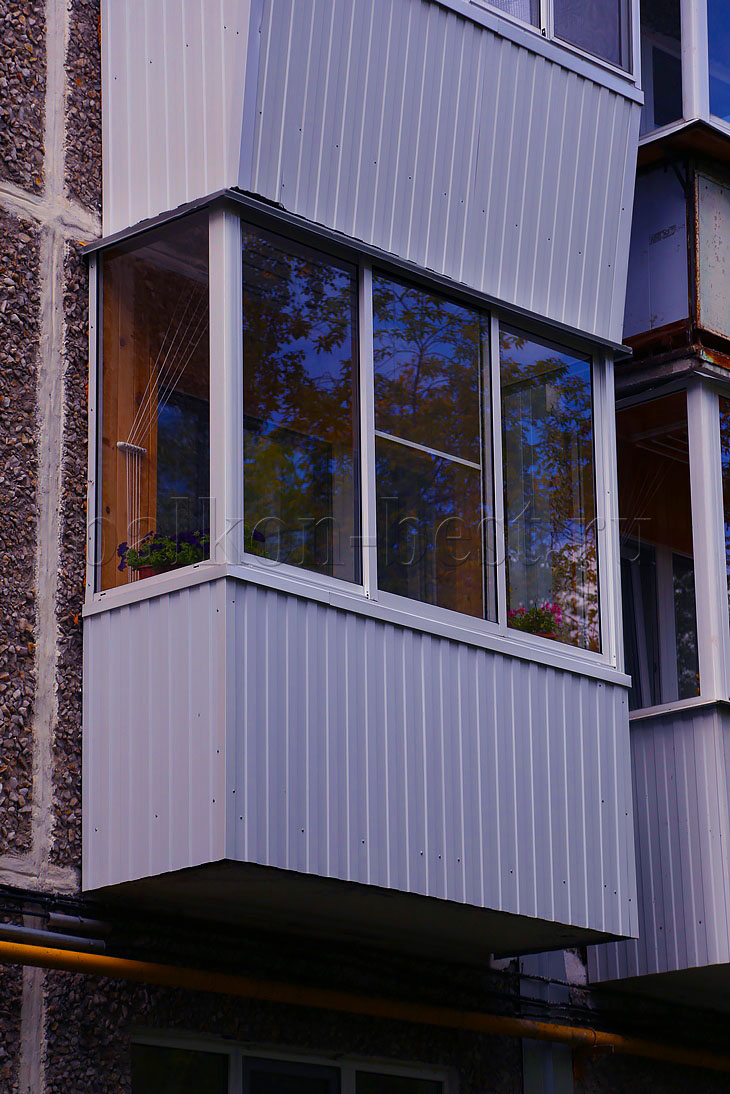 4. Остекление и внешняя отделка лоджии. Устанавливаются окна вместе с откосами и отливами. Обшивка может выполняться как до, так и после установки окон.
